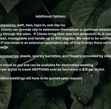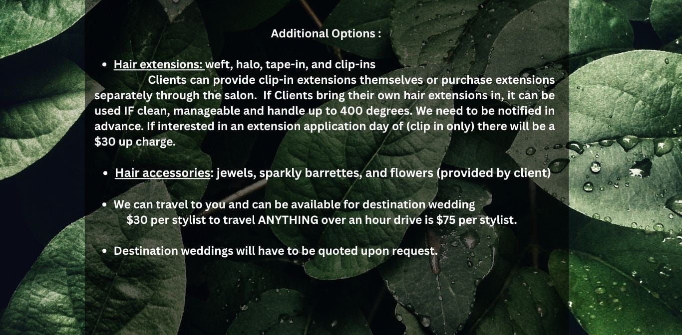 **We need to be notified in advance.If interested in an extension application day of (clip in only) there will be a $30 up charge. Clients can provide the extensions themselves or purchase separately through the salon.