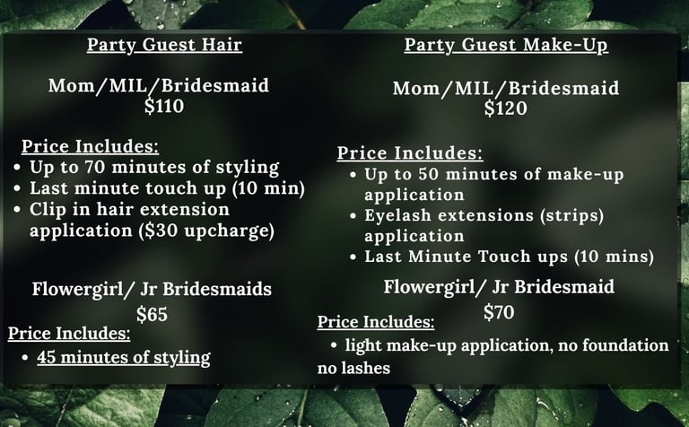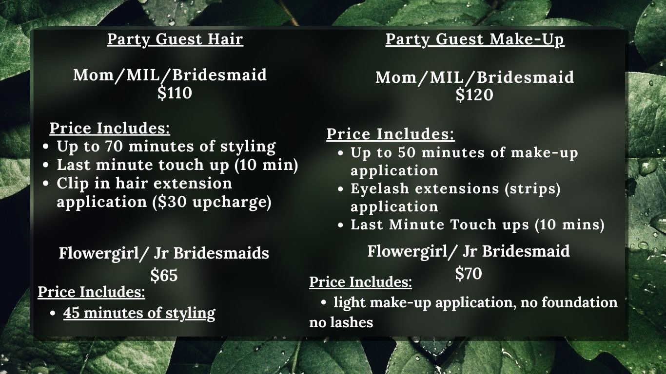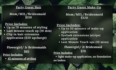 ** $30 per stylist to travel ANYTHING over an hour drive is $75 per stylist. Destination weddings will have to be quoted upon request.