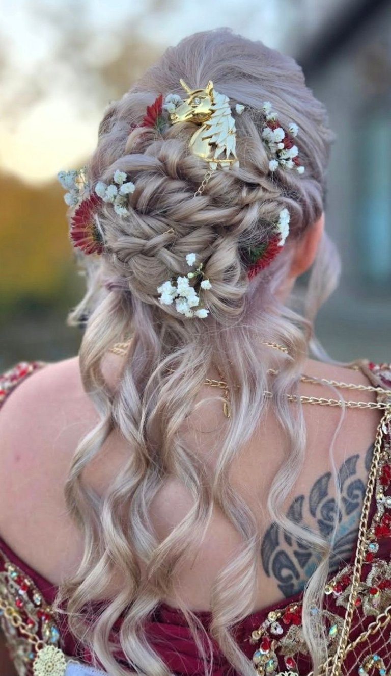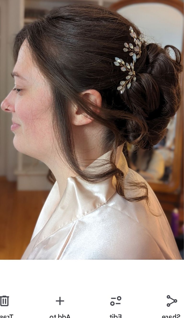 Hair accessories: jewels, sparkly barrettes, and flowers (provided by client)